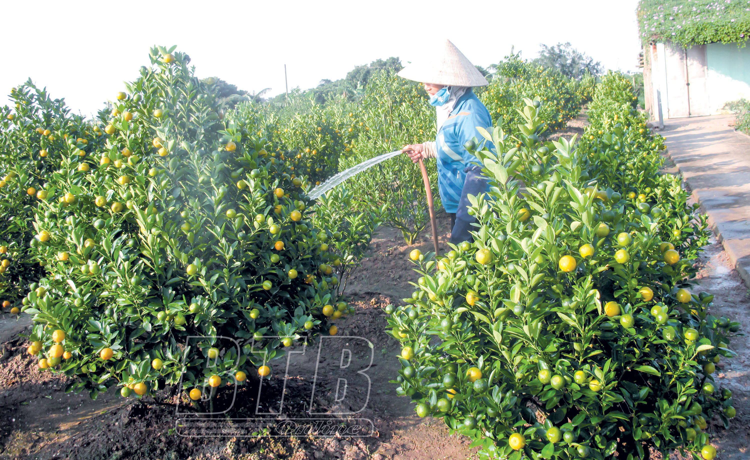 Nông dân xã Đông Hòa (thành phố Thái Bình) chăm sóc quất chuẩn bị phục vụ thị trường tết.
