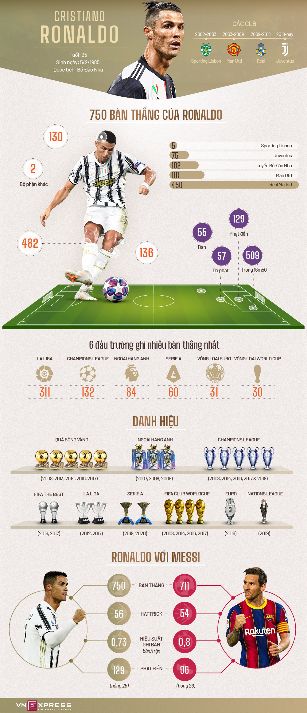 750 bàn của Ronaldo được ghi như thế nào?