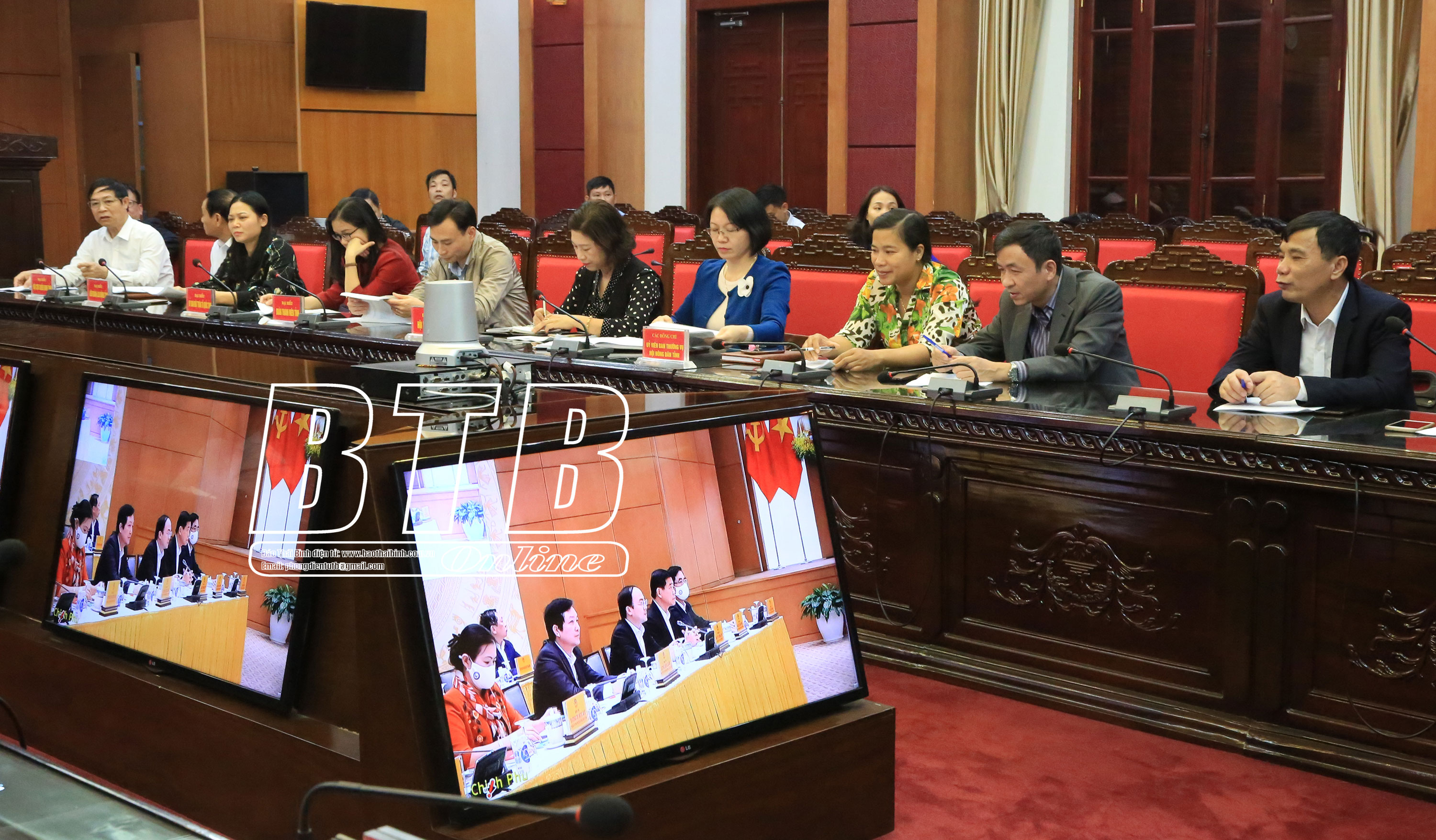 Các đại biểu dự hội nghị trực tuyến tại điểm cầu Thái Bình. Ảnh: Thành Tâm