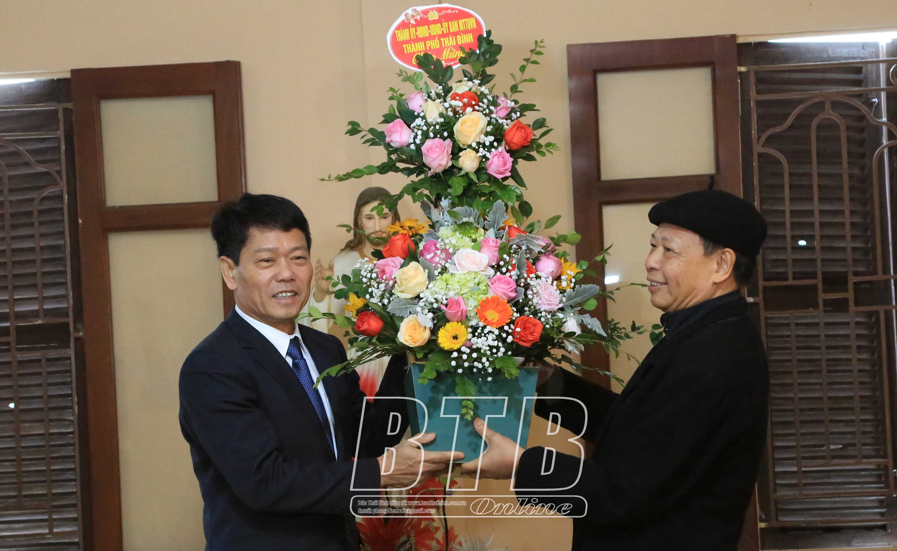 Đồng chí Phó Bí thư Tỉnh ủy, Chủ tịch UBND tỉnh thăm, chúc mừng linh mục Ngô Văn Toan, Hạt trưởng hạt thành phố Thái Bình, Chánh xứ Sa Cát, phường Hoàng Diệu; linh mục Trần Xuân Chiêu, Chánh xứ Nghĩa Chính, xã Phú Xuân (thành phố Thái Bình).