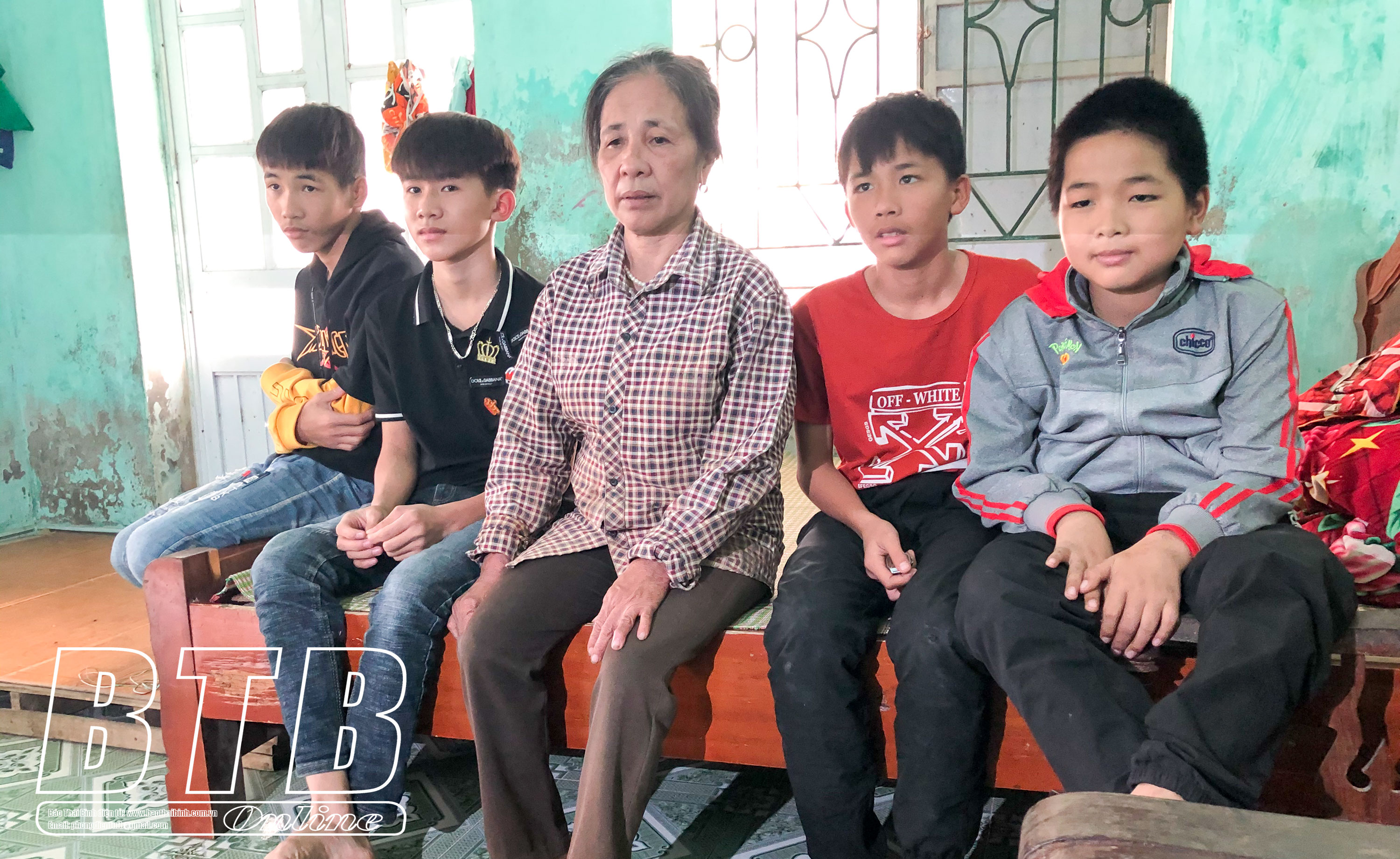 Hai anh em Nguyễn Quốc Bình mồ côi cha mẹ hiện đang sống cùng bà nội và 2 người em con chú ruột tại xã Đông Tân (Đông Hưng).