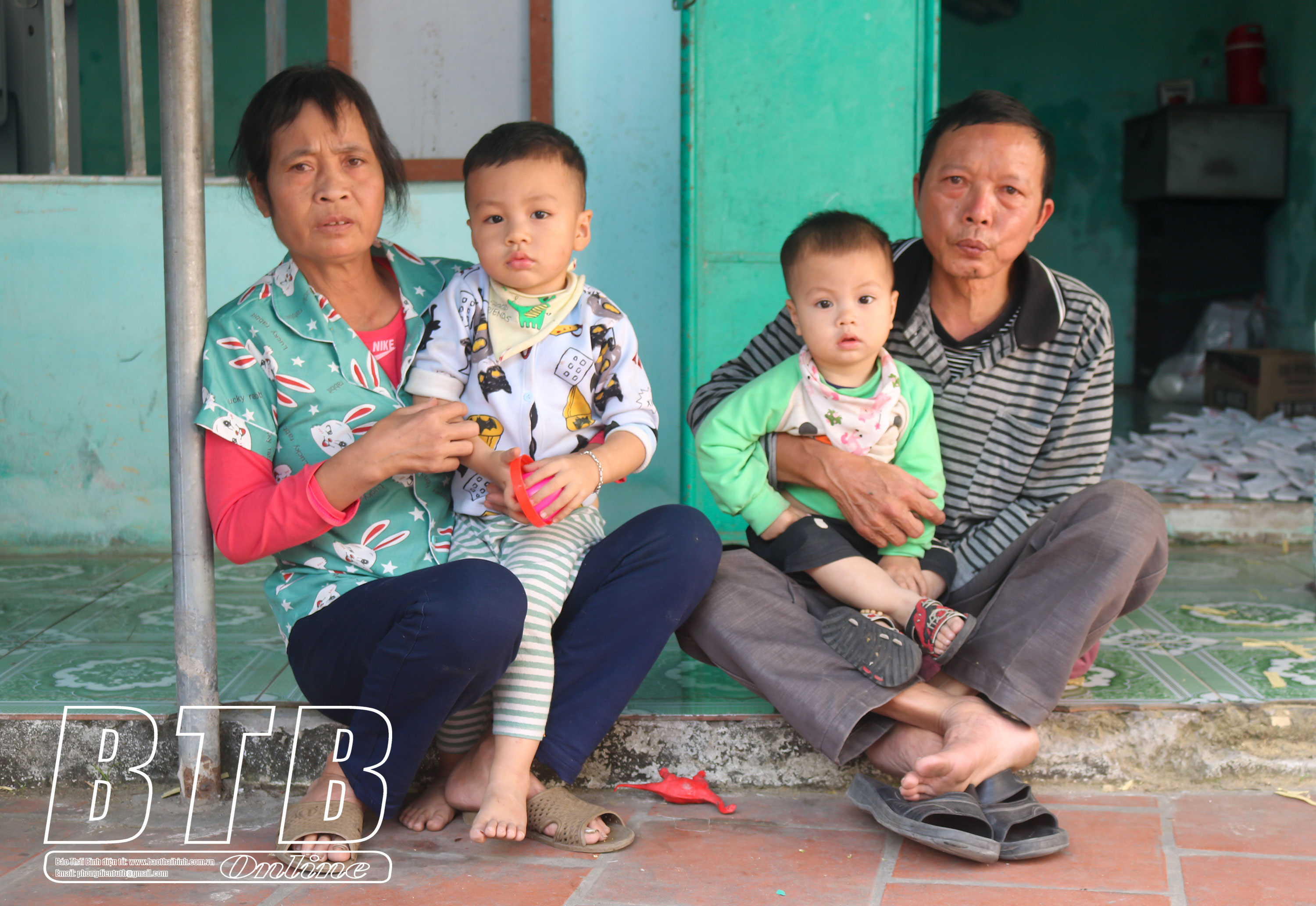 Men theo con đường dẫn lối vào thôn Duyên Hà, xã Đông Kinh (Đông Hưng), chúng tôi tìm đến nhà anh Đỗ Văn Duy. Ngôi nhà với những mảng tường bong tróc ẩm mốc, rộng chừng hơn 25m2 nhưng lại là chỗ ở của cả 3 thế hệ: Bố mẹ, hai vợ chồng anh và hai con của anh chị. Là hộ nghèo nên cuộc sống của cả gia đình anh rất chật vật. Anh làm phụ hồ, còn chị đi làm công nhân. Khó khăn càng chồng chất khó khăn khi cả bố mẹ và 2 cậu con trai của anh cùng mắc bệnh hiểm nghèo. Năm 2016, mẹ anh bị mắc bệnh giảm tiểu cầu vô căn điều trị. Đến năm 2017, lại một lần nữa gia đình anh nhận được hung tin: bố anh bị ung thư lưỡi, mặc dù đã phải cắt bỏ 1/2 lưỡi nhưng hiện tại vẫn còn nhiều hạch ở cổ. 2 cậu con trai đều mắc bệnh về máu bẩm sinh. Cậu con trai lớn sinh năm 2017 thường hay bị tím mặt, lịm người. Con trai thứ hai bị nhiễm trùng máu và thiếu máu, hàng tháng phải lên khám và điều trị tại Viện Huyết học và Truyền máu trung ương.