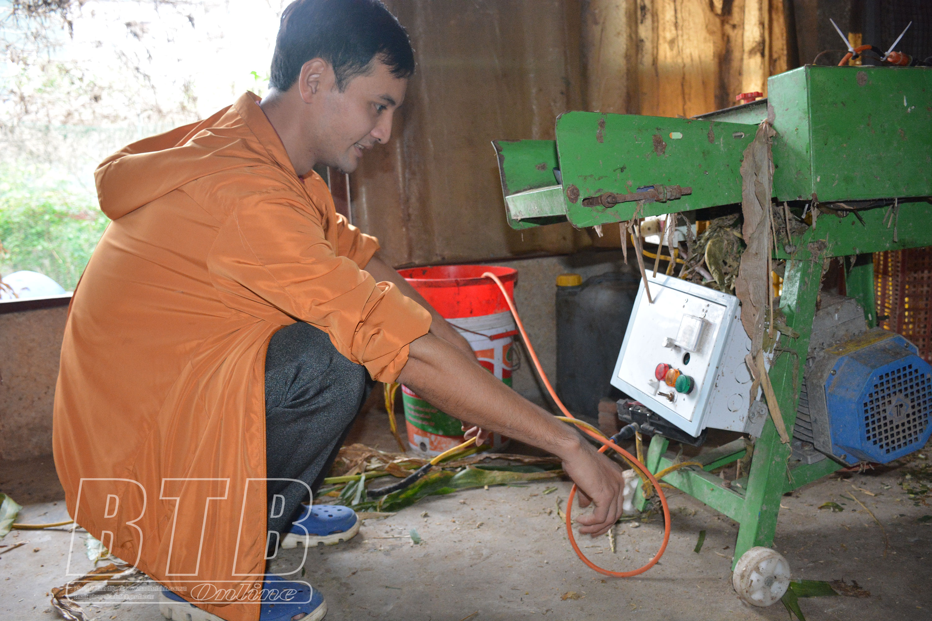 Thiết bị trộn men được lắp trực tiếp trên máy thái cỏ giúp giảm nhân lực cho chủ gia trại.