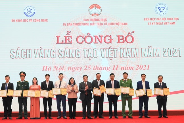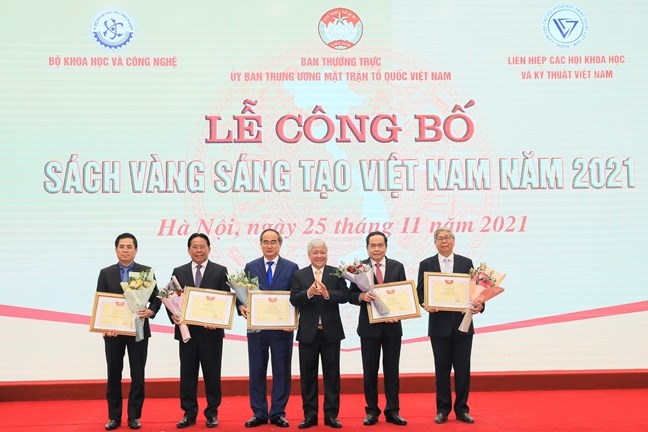 Chiều 25/11, Ban Thường trực Ủy ban Trung ương MTTQ Việt Nam phối hợp với Bộ Khoa học và Công nghệ, Liên hiệp các Hội Khoa học và Kỹ thuật Việt Nam và các cơ quan liên quan tổ chức Lễ công bố Sách vàng Sáng tạo Việt Nam năm 2021.