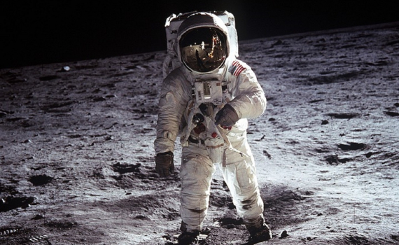 Phi hành gia tàu Apollo 11 trong bộ đồ vũ trụ lần đầu tiên đặt chân lên Mặt trăng.