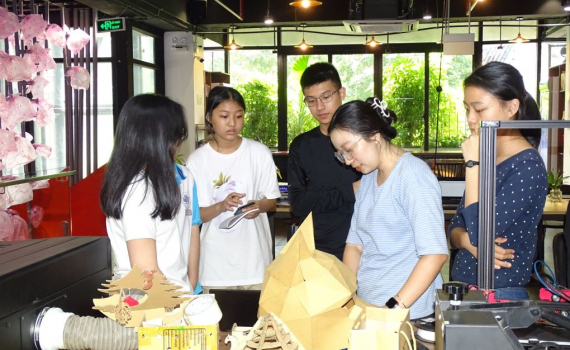 Ở Fablab Saigon (trụ sở tại số 2 Phan Văn Đáng, TP Thủ Đức) có nhiều bạn trẻ đang là học sinh đến đây học tập. Hè năm 2022 Cát Tường, học sinh lớp 11 trường phổ thông Năng khiếu, Đại học Quốc gia TP HCM chọn Fablab Saigon là điểm đến. Em cho biết, dành trọn hai tháng hè của mình để có những trải nghiệm cho đam mê sáng chế. Tại đây em được đàn anh là Vũ Thiện Nam Anh đang là sinh viên Cao đẳng Edmonds (Mỹ) hướng dẫn phát triển các ý tưởng nghiên cứu. Nhóm thảo luận cùng thiết kế sản phẩm mẫu là turbine tạo điện năng từ hệ thống cánh quạt, lưu trữ điện bằng pin lithium.