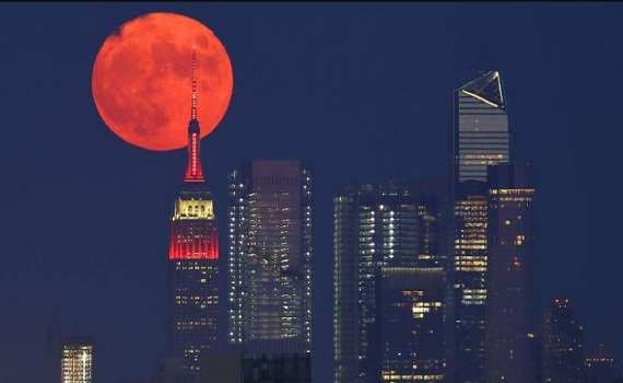 Trăng hươu phía sau tòa nhà Empire State ở New York vào ngày 13/7/2021.