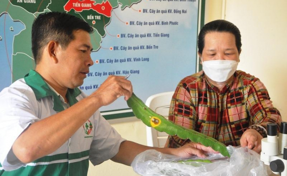 “Bác sĩ” cây trồng Nguyễn Huy Cường, Thạc sĩ bộ môn Bảo vệ thực vật thuộc Viện Cây ăn quả miền nam, hỏi thăm thêm và ghi chép tỉ mỉ vào tờ giấy để gửi lại cho bà Phượng. “Bác sĩ” Cường giải thích một cách cụ thể, rõ ràng về chứng bệnh trên, nguyên nhân xuất hiện, cách phòng bệnh và hướng xử lý.