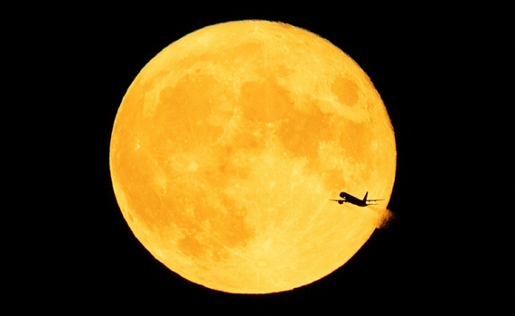 Một chiếc máy bay đi qua phía trước Trăng Cá Tầm sau khi cất cánh từ Sân bay Quốc tế Minneapolis-St. Paul ở Mỹ vào ngày 3/8/2020.