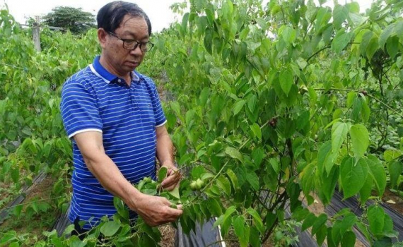 Ông Nguyễn Văn Cường, nông dân xã Xuân Bắc, huyện Xuân Lộc, Đồng Nai được nhóm nghiên cứu cung cấp giống, phân bón, kỹ thuật làm giàn chữ T và quy trình chăm sóc.