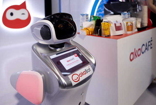 Robot phục vụ cafe tự động tại gian hàng akaBot sự kiện FPT Techday 2022