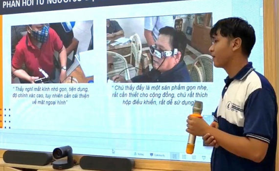Nhóm sinh viên công nghệ thông tin ở TP HCM làm mắt kính ứng dụng trí tuệ nhân tạo (AI) chuyển văn bản thành giọng nói, hỗ trợ người mù đọc sách.