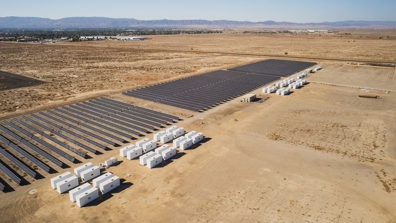 Quang cảnh cơ sở lưu trữ và năng lượng mặt trời SEPV Sierra thuộc sở hữu của công ty Giải pháp lưu trữ B2U, ở Lancaster, California, Mỹ. Ảnh: Reuters.