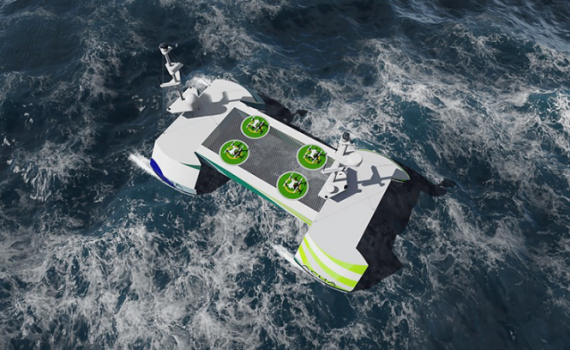 Mô phỏng tàu hydro không người lái của HI-FIVED nhìn từ trên cao. Ảnh: ACUA Ocean