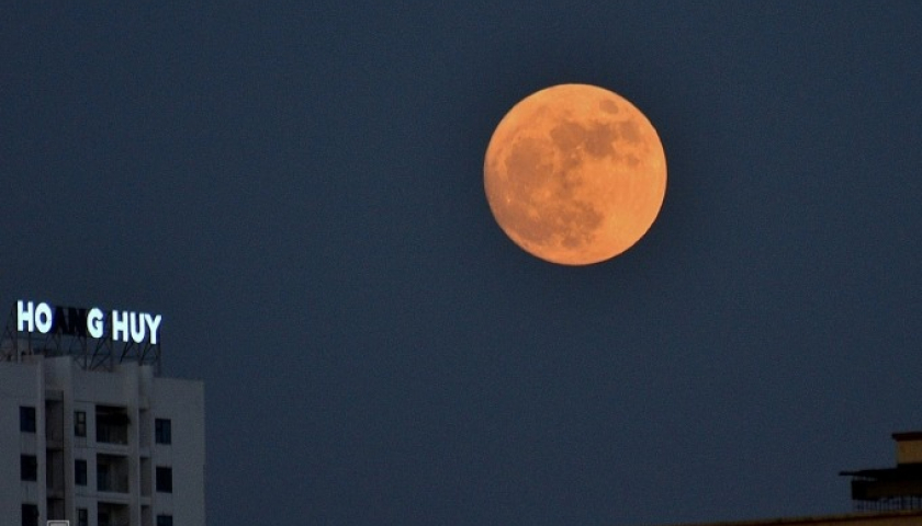 Ảnh chụp trăng tròn lúc 18h10 ngày 30/8 ở quận Nam Từ Liêm, Hà Nội.