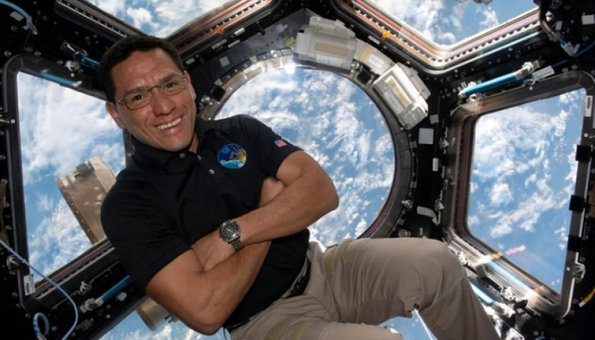 Phi hành gia Frank Rubio chụp ảnh trước cửa sổ vòm của trạm ISS. Ảnh: NASA