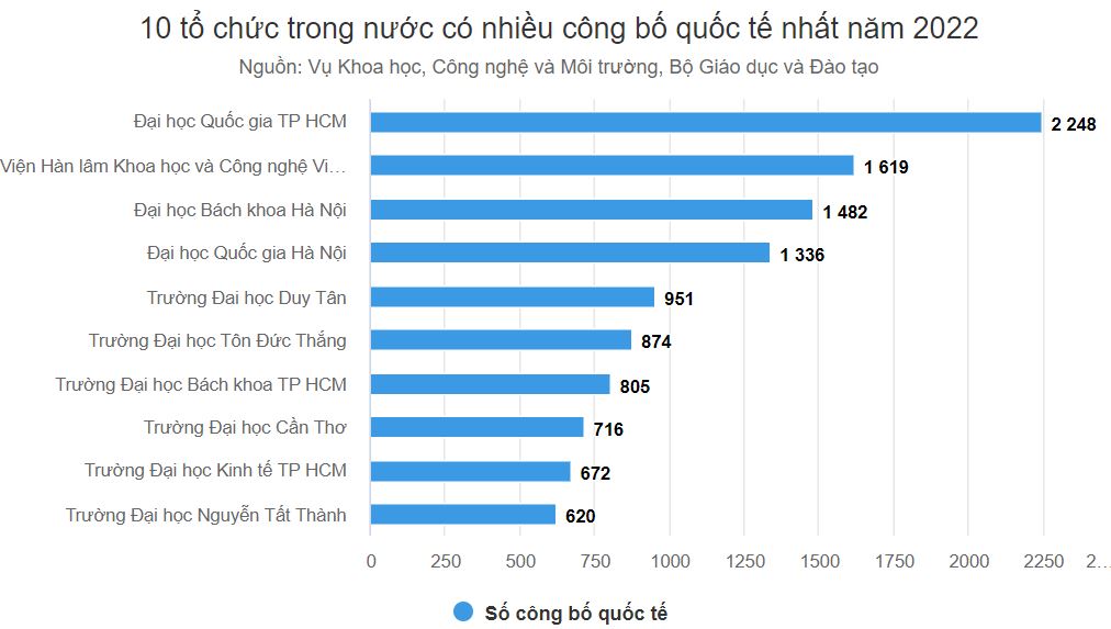 Thời gian qua Việt Nam có tốc độ gia tăng nhanh chóng số công bố quốc tế. Số liệu của Vụ Khoa học, Công nghệ và Môi trường, Bộ Giáo dục và Đào tạo, hồi cuối tháng 8 công bố kết quả hoạt động khoa học, công nghệ tại các cơ sở giáo dục đại học cho thấy, từ năm 2020 đến nay, số công bố mỗi năm đều đạt trên 18.000.