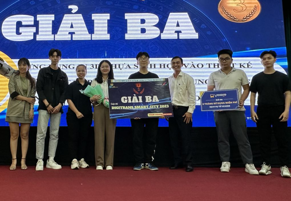 Đại diện thành viên nhóm nhận giải ba tại cuộc thi Sáng kiến xây dựng thành phố thông minh do Vườn ươm doanh nghiệp công nghệ cao, Khu công nghệ cao TP HCM tổ chức hồi tháng 11. Ảnh: SHTP-IC.