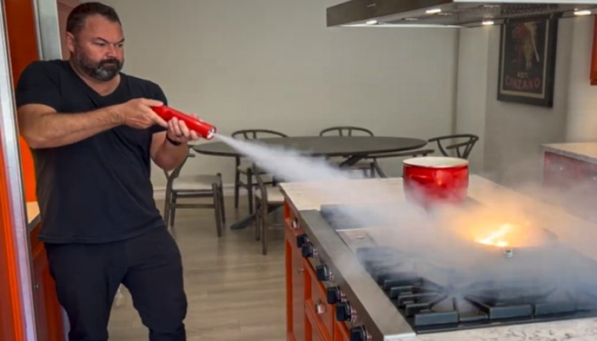 Bình cứu hỏa Maus phun khói kali để dập tắt đám cháy. Ảnh: Maus Safety