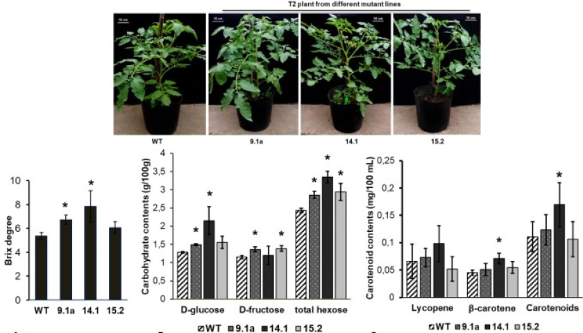 Nhóm nghiên cứu cũng ứng dụng công nghệ này với cà chua làm tăng lượng đường và amino acid. Công nghệ chỉnh sửa gene Crispr/Cas tạo đột biến vùng uORF làm mất chức năng điều khiển của nó lên gene bZIP giúp tăng hàm lượng amino acid lên gấp đôi, hàm lượng đường glucose và fructose tăng đáng kể so với giống gốc.