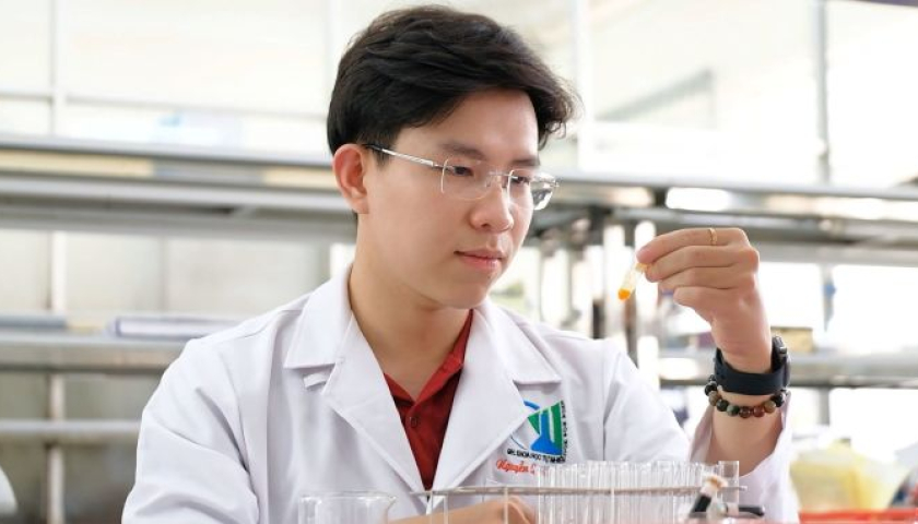 Nguyễn Quốc Trung tại phòng thí nghiệm Khoa hóa học, trường Đại học Khoa học Tự nhiên TP HCM.