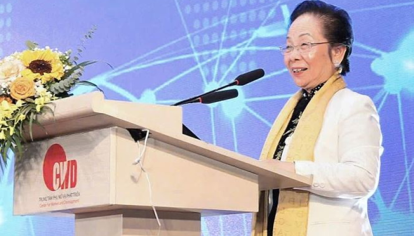 GS.TS Nguyễn Thị Doan, Nguyên Phó Chủ tịch nước, Chủ tịch UBGT Kovalevskaia Việt Nam phát biểu tại buổi giao lưu.