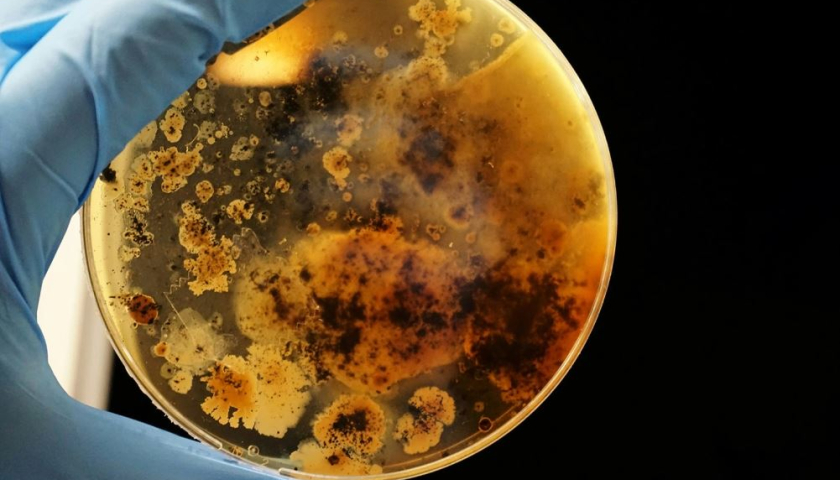 Các cụm vi khuẩn phát triển trên đĩa thí nghiệm kết hợp với bột sắt. Ảnh: Adrian Lange/Bapt