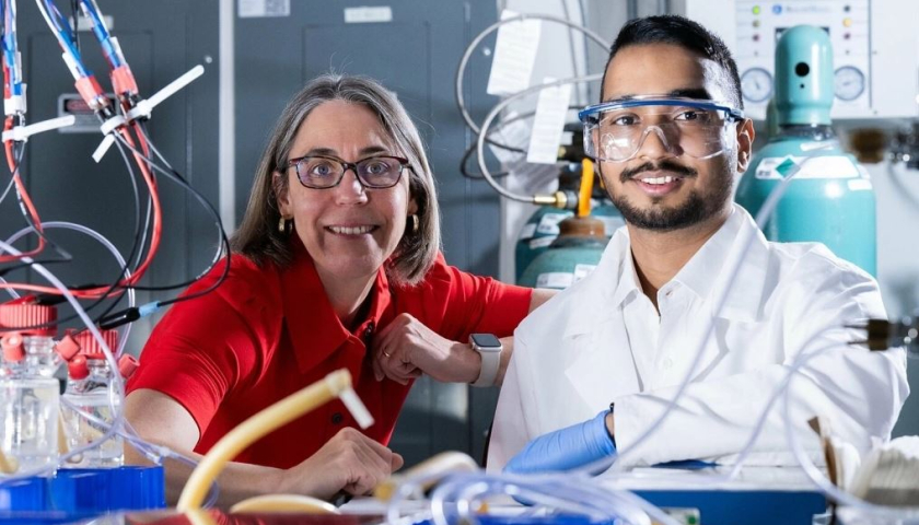 Caroline Ajo-Franklin (trái), Biki Bapi Kundu (phải) cùng các đồng nghiệp tìm ra cơ chế giúp một số vi khuẩn thở bằng cách tạo ra điện. Ảnh: Jeff Fitlow/Đại học Rice
