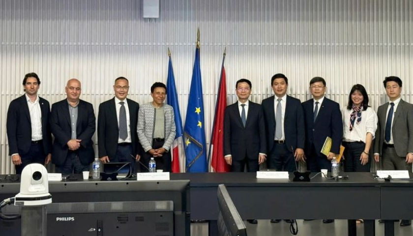 Bộ trưởng Nguyễn Mạnh Hùng trong buổi làm việc với Viện Bách khoa Paris, Pháp.