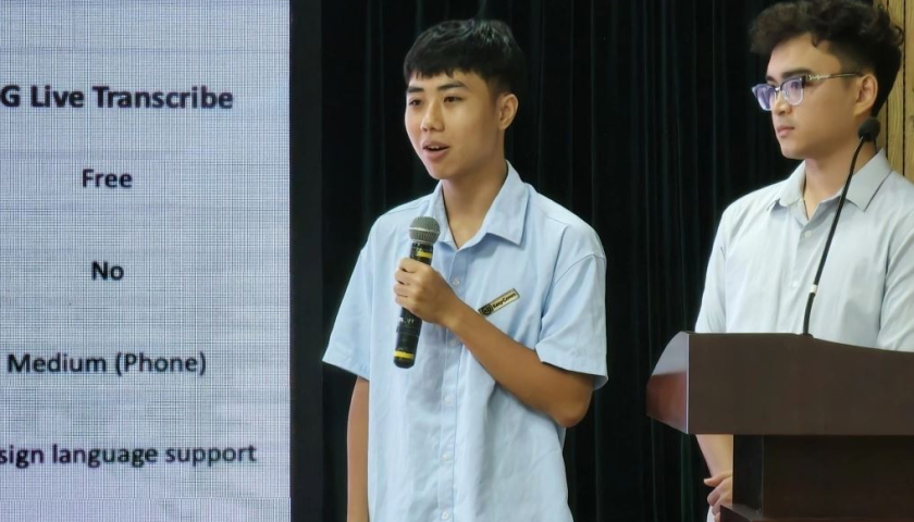 Ngô Duy Đông - đại diện nhóm phát triển chia sẻ về nền tảng hỗ trợ giao tiếp cho người khiếm thính.