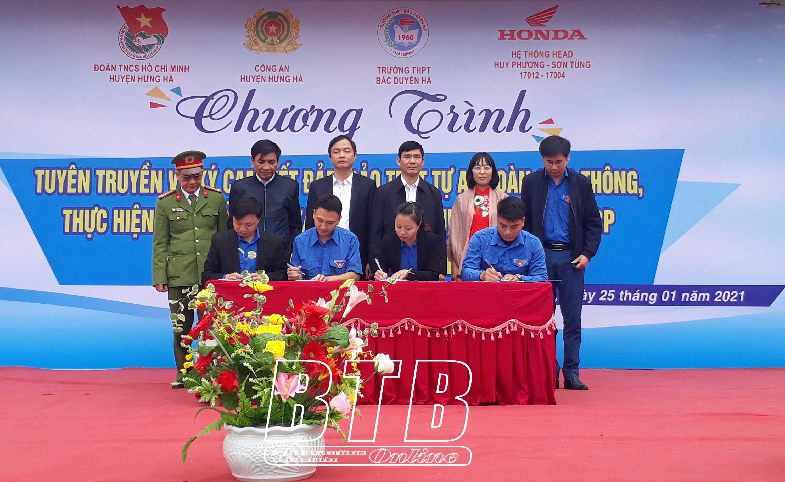 Nhân dịp này, đại diện Đoàn các xã, thị trấn và đoàn trực thuộc; Đoàn trường THPT, tổng phụ trách đội trong huyện Hưng Hà đã ký cam kết bảo đảm ATGT, thực hiện Luật số 14 và Nghị định 137.