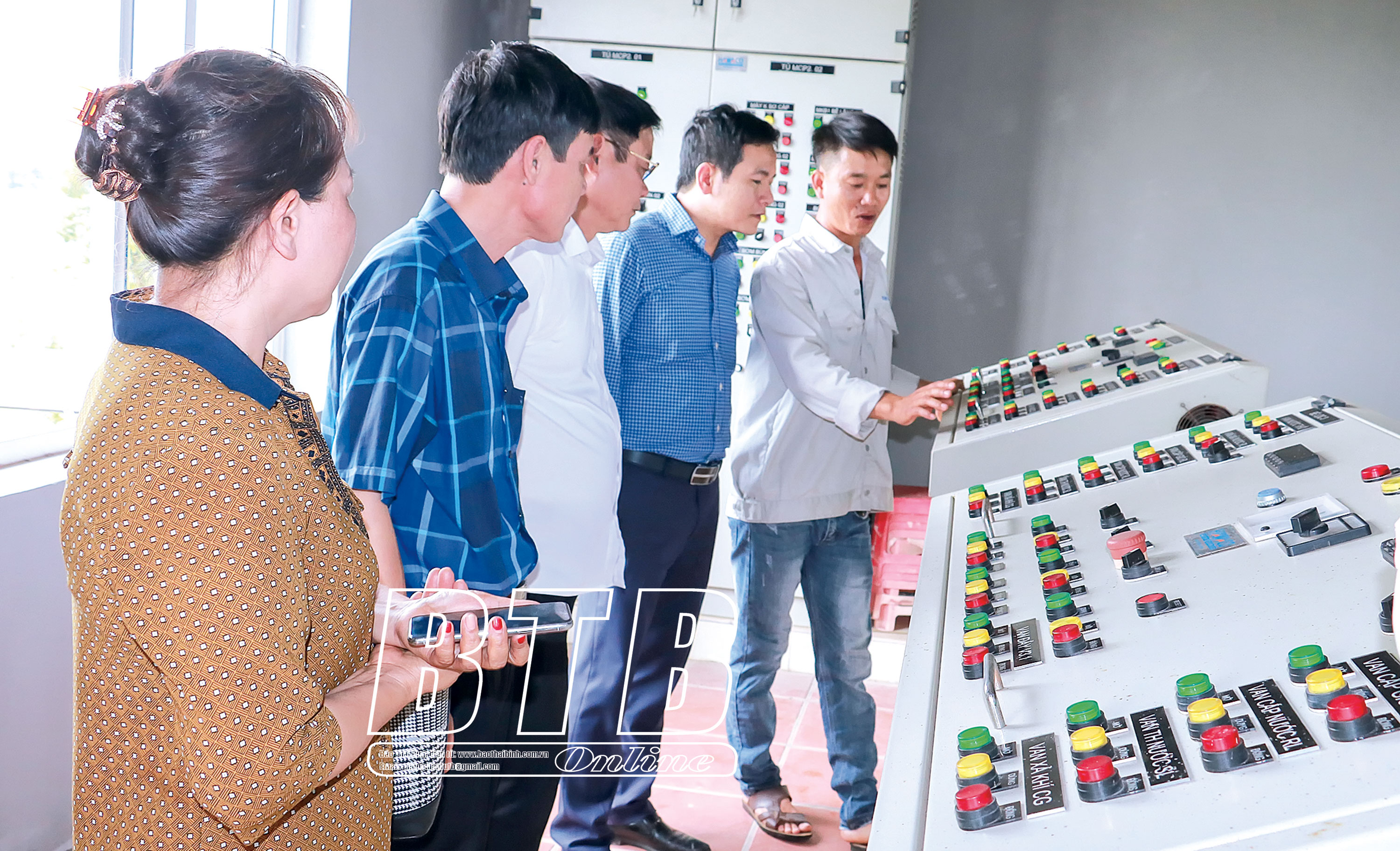 Các đồng chí lãnh đạo huyện Đông Hưng kiểm tra hoạt động sản xuất tại cụm công nghiệp Đô Lương.