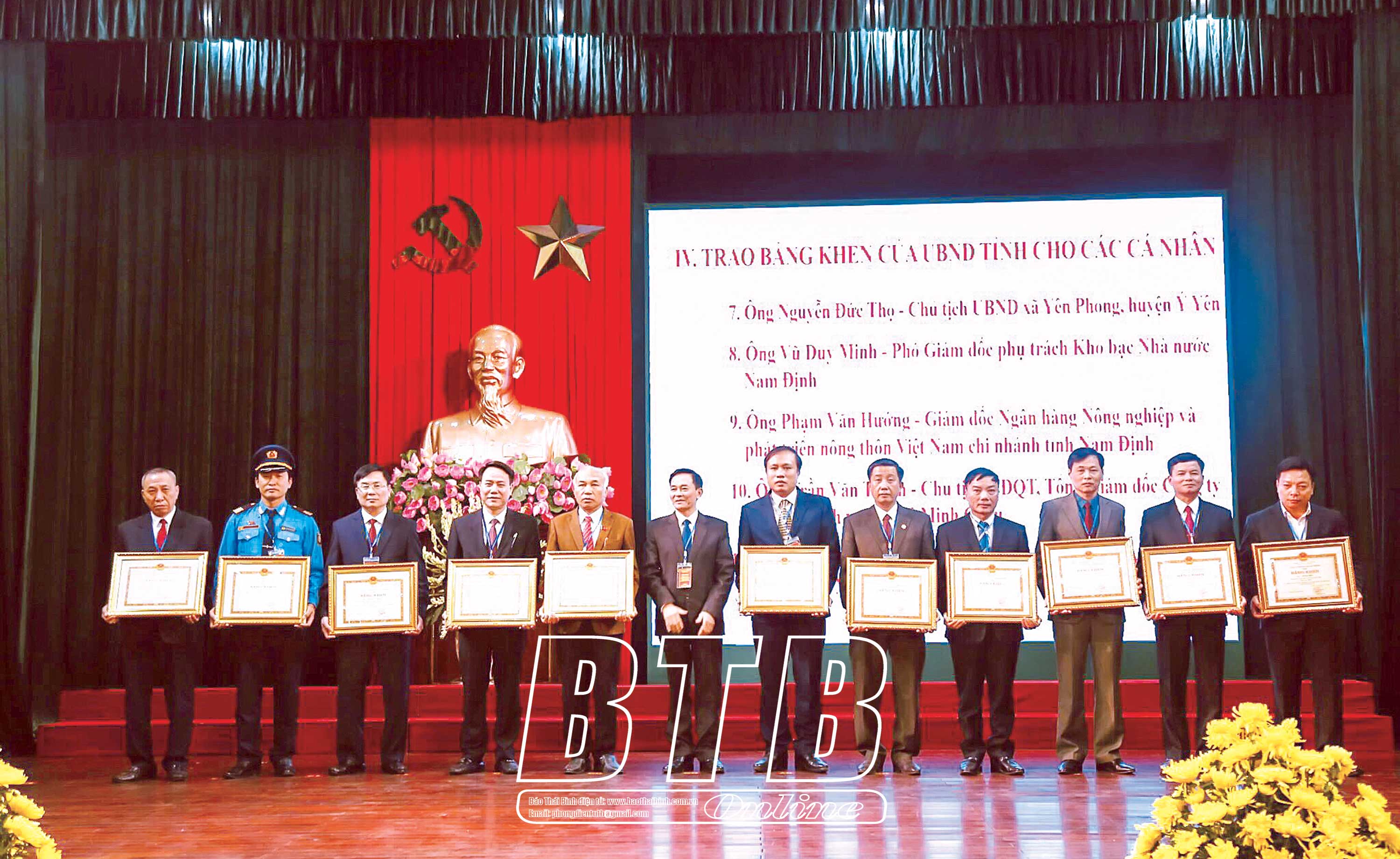 Ông Trần Văn Tuyên, Tổng Giám đốc Công ty Cổ phần Bảo vệ Minh Châu (người thứ hai từ trái sang) được UBND tỉnh Nam Định tặng bằng khen tại hội nghị tổng kết phong trào toàn dân bảo vệ an ninh Tổ quốc tỉnh Nam Định 2020 - 2021.