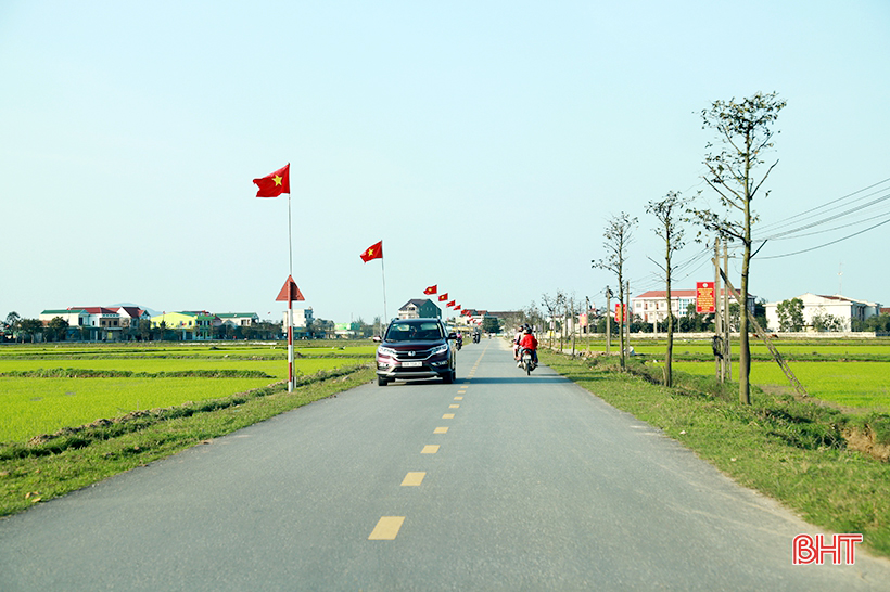 Những ngày này, sắc xuân ngập tràn khắp nẻo đường quê. Hệ thống hạ tầng giao thông được đầu tư nâng cấp, liên hoàn, lưu thông thông suốt liên tỉnh, huyện và xã làm nên những cung đường xuân thoáng đãng, không gian tươi mới. (Trong ảnh: Đường về xã NTM nâng cao Cẩm Bình, huyện Cẩm Xuyên).