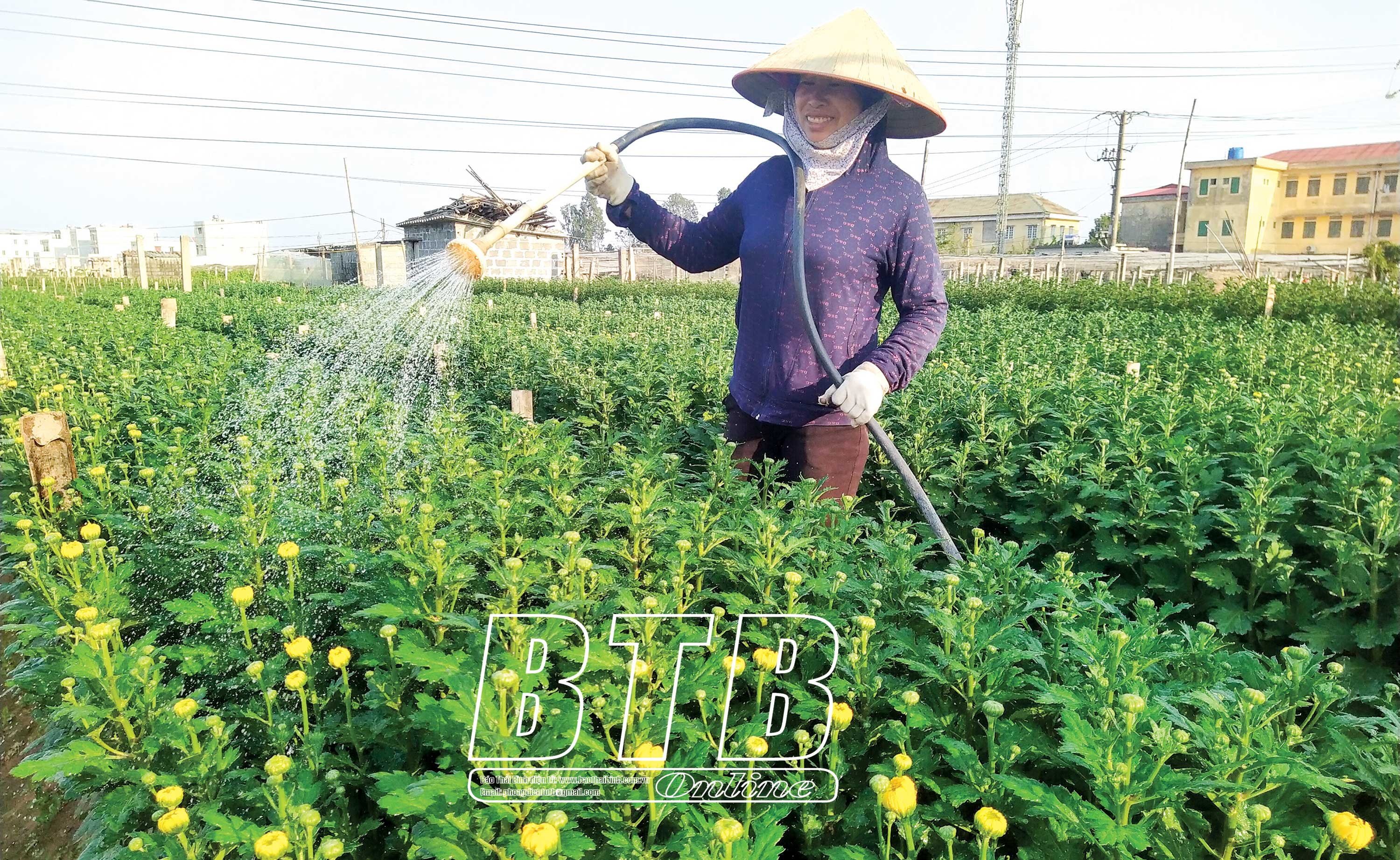 Nông dân xã Vũ Chính (thành phố Thái Bình) chăm sóc hoa.