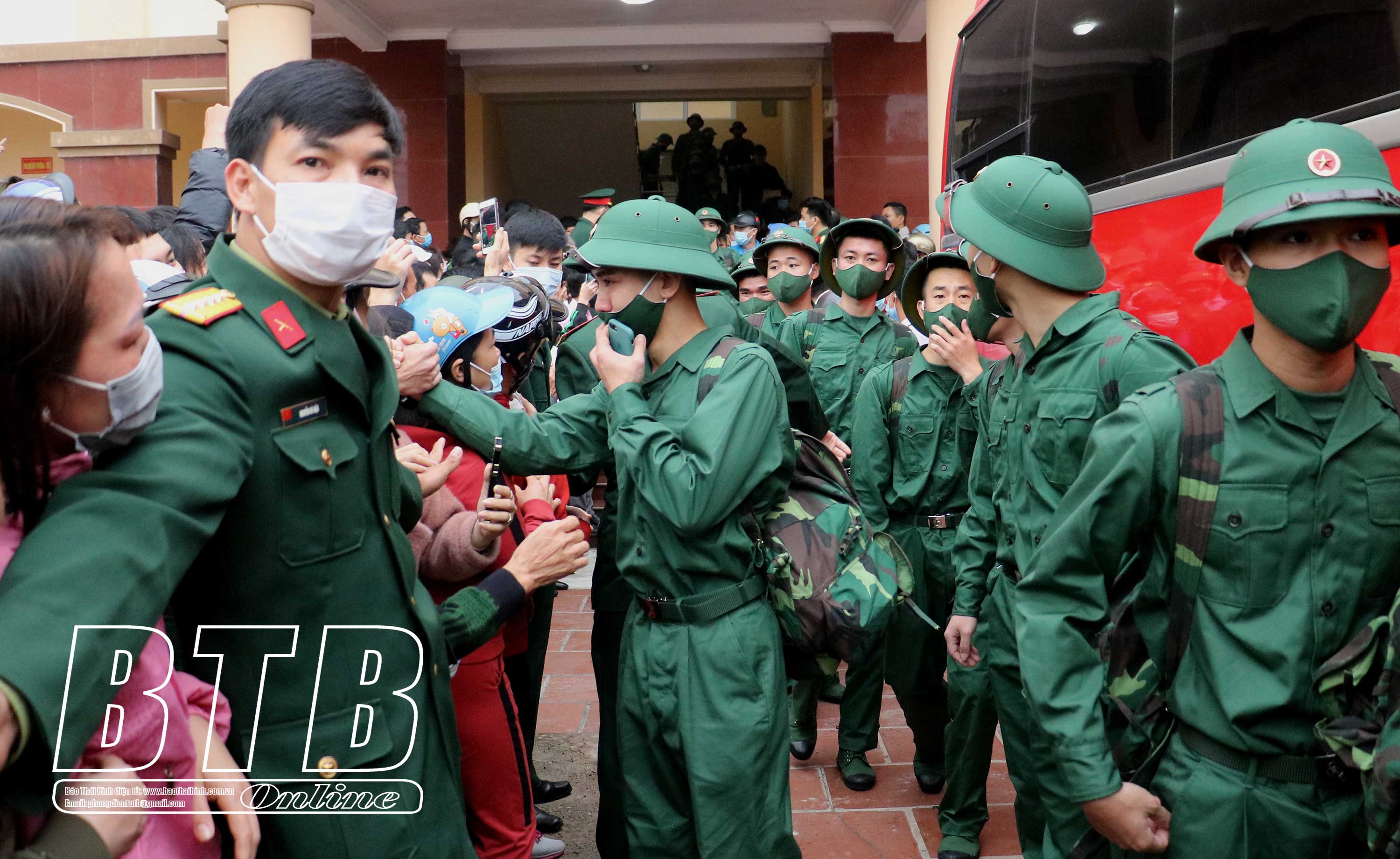 Các tân binh thành phố Thái Bình lên đường nhập ngũ trong ngày 9/3/2021.