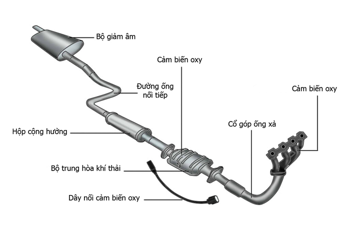 Kết cấu hệ thống xả trên ô tô với bộ trung hòa khí thải. Ảnh: YourMechanic