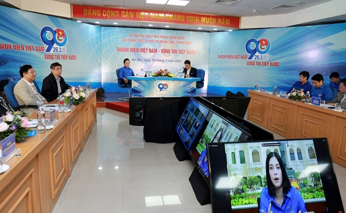 Quang cảnh cuộc đối thoại trực tuyến giữa Bí thư thứ nhất Trung ương Đoàn với đoàn viên, thanh niên, thiếu nhi trong và ngoài nước.