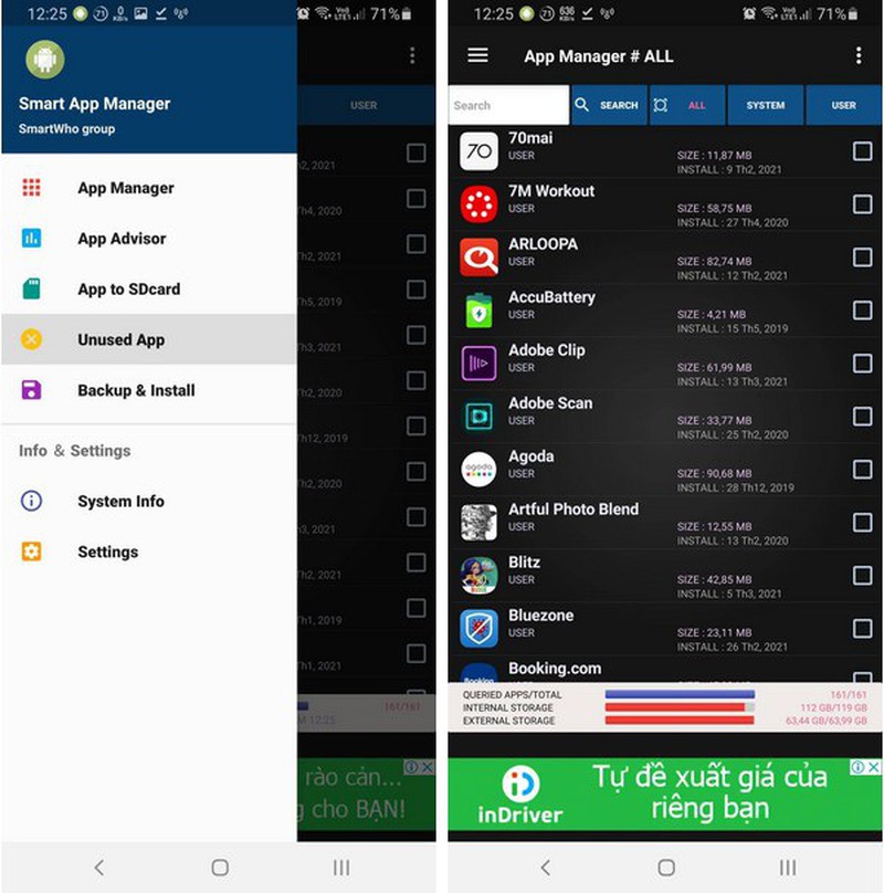 Để dễ dàng quản lý và gỡ bỏ các ứng dụng trên Android, người dùng có thể nhờ đến sự trợ giúp của ứng dụng Smart App Manager. Đây là ứng dụng miễn phí, giúp quản lý chi tiết danh sách các ứng dụng đã cài đặt trên thiết bị, nắm bắt các thông tin về thời điểm đã cài đặt ứng dụng, lần sử dụng gần đây nhất của mỗi ứng dụng... Dựa vào các thông tin này, bạn sẽ biết ứng dụng nào từ lâu mình không còn dùng đến để gỡ bỏ.