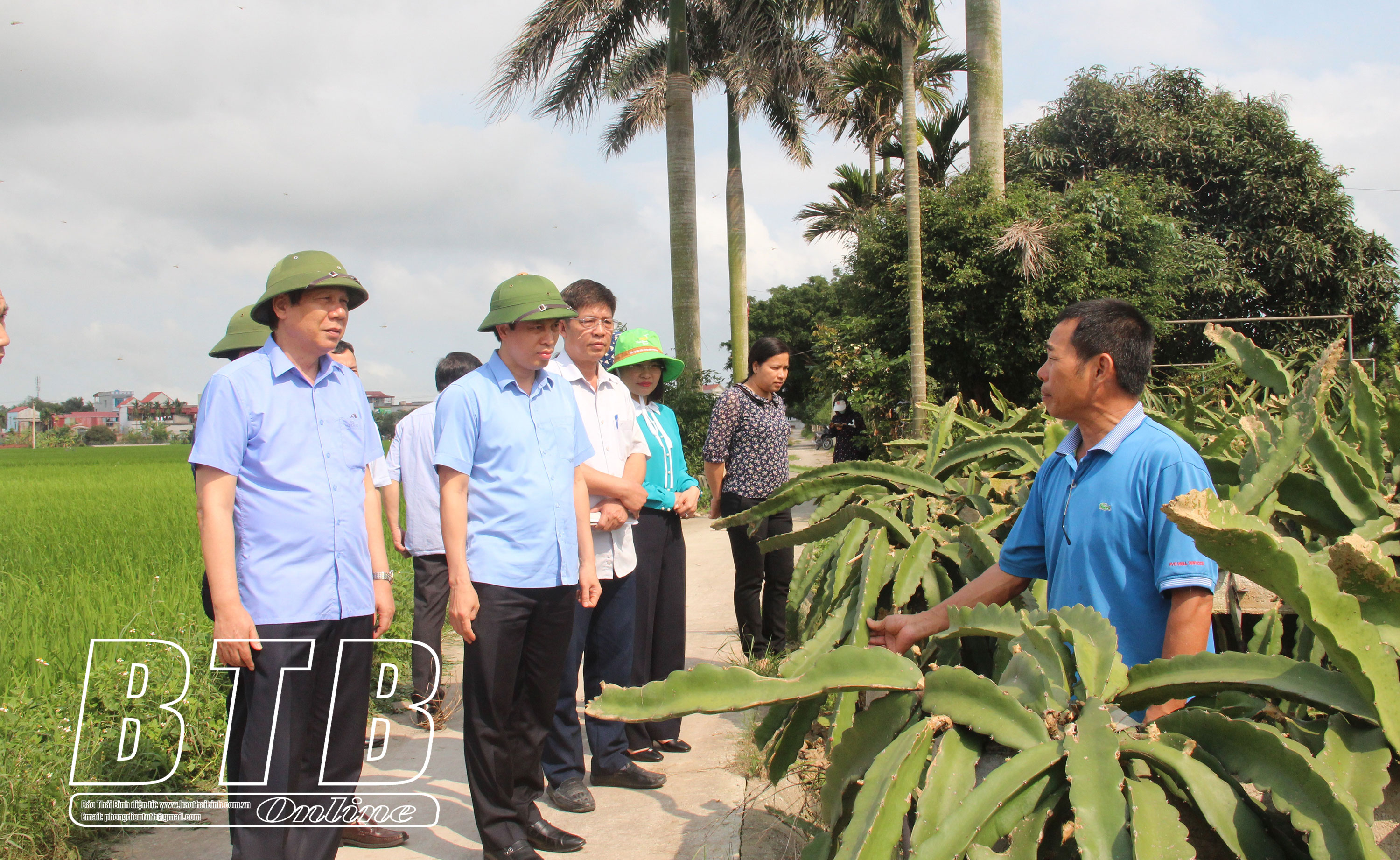 Các đồng chí lãnh đạo tỉnh kiểm tra sản xuất nông nghiệp tại xã Thụy Duyên (Thái Thụy).