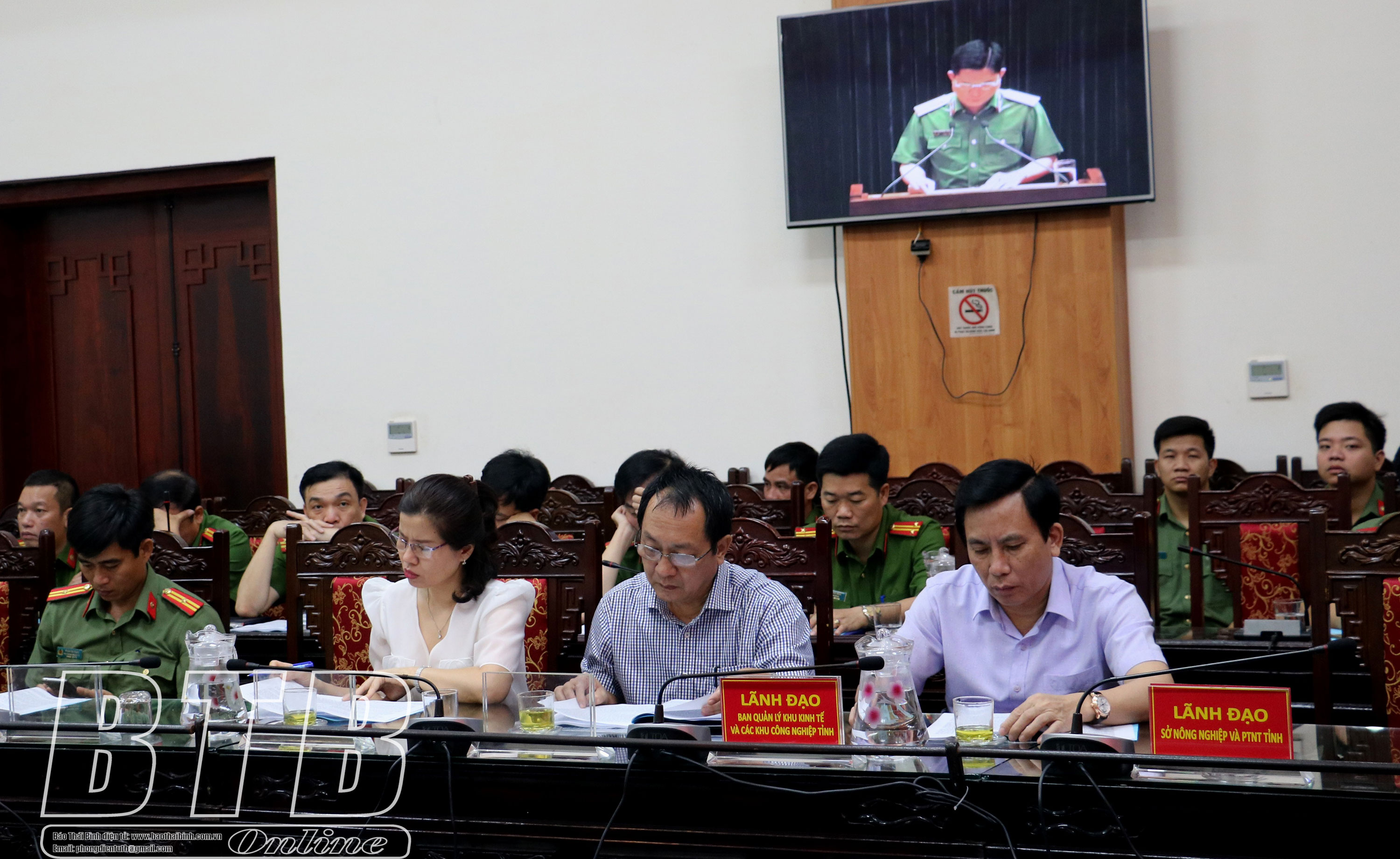 Thiếu tướng Lê Quốc Hùng, Ủy viên Ban Chấp hành Trung ương Đảng, Thứ trưởng Bộ Công an chủ trì hội nghị tại điểm cầu Bộ Công an. Đồng chí Trần Thị Bích Hằng, Tỉnh ủy viên, Phó Chủ tịch UBND tỉnh dự hội nghị tại điểm cầu Công an tỉnh.