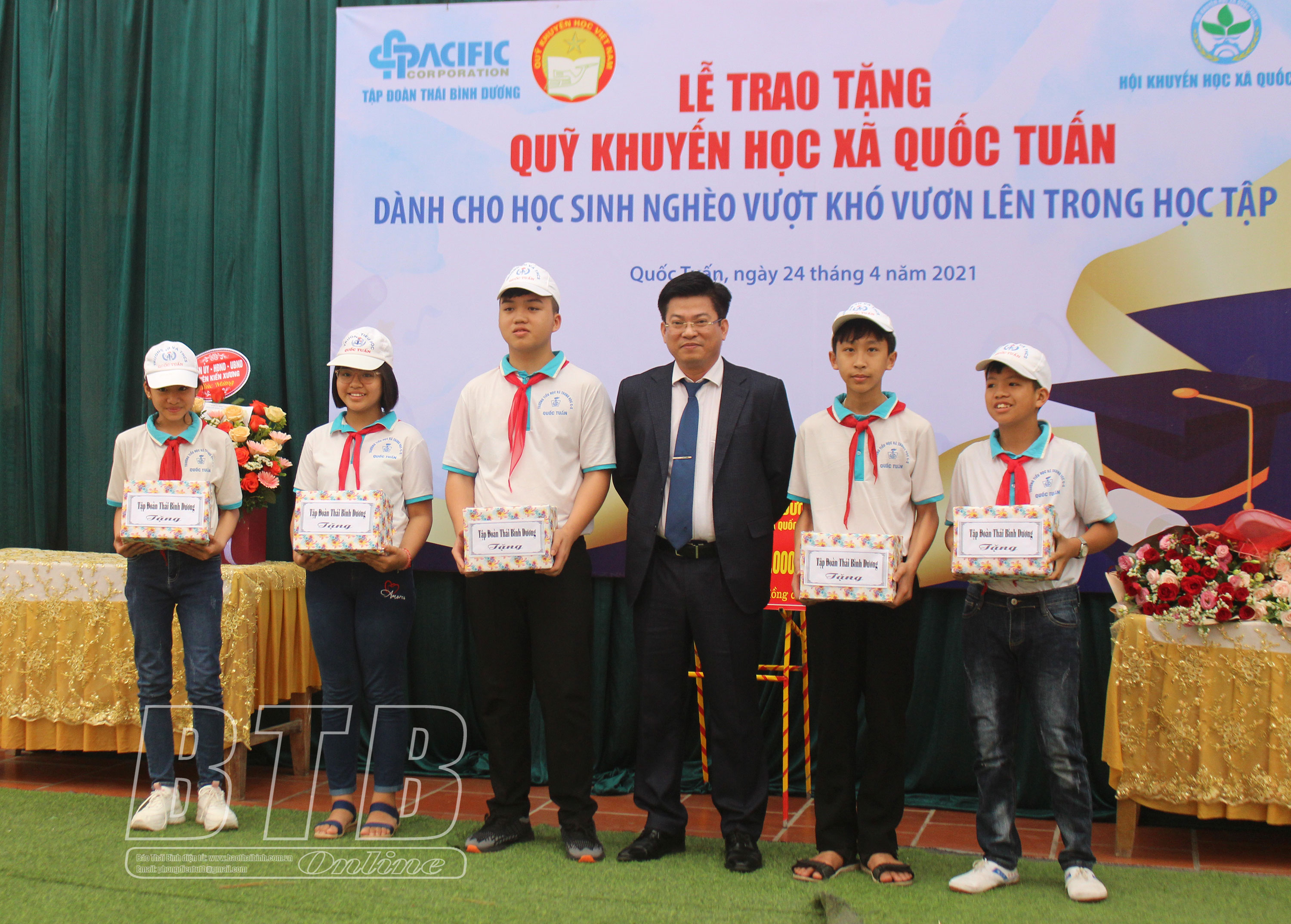 Tại buổi lễ, đại diện lãnh đạo Công ty Cổ phần Tập đoàn Thái Bình Dương đã trao tặng số tiền 350.000.000 đồng cho quỹ khuyến học xã Quốc Tuấn với mong muốn chung tay góp sức ủng hộ, giúp đỡ học sinh nghèo vượt khó vươn lên trong học tập, giúp các em có điều kiện tiếp tục đến trường. Qua đó góp phần vào sự nghiệp khuyến học, khuyến tài của địa phương.