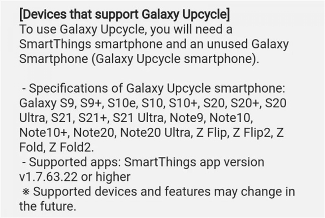 Danh sách các thiết bị của Samsung hỗ trợ Galaxy Upcycling.