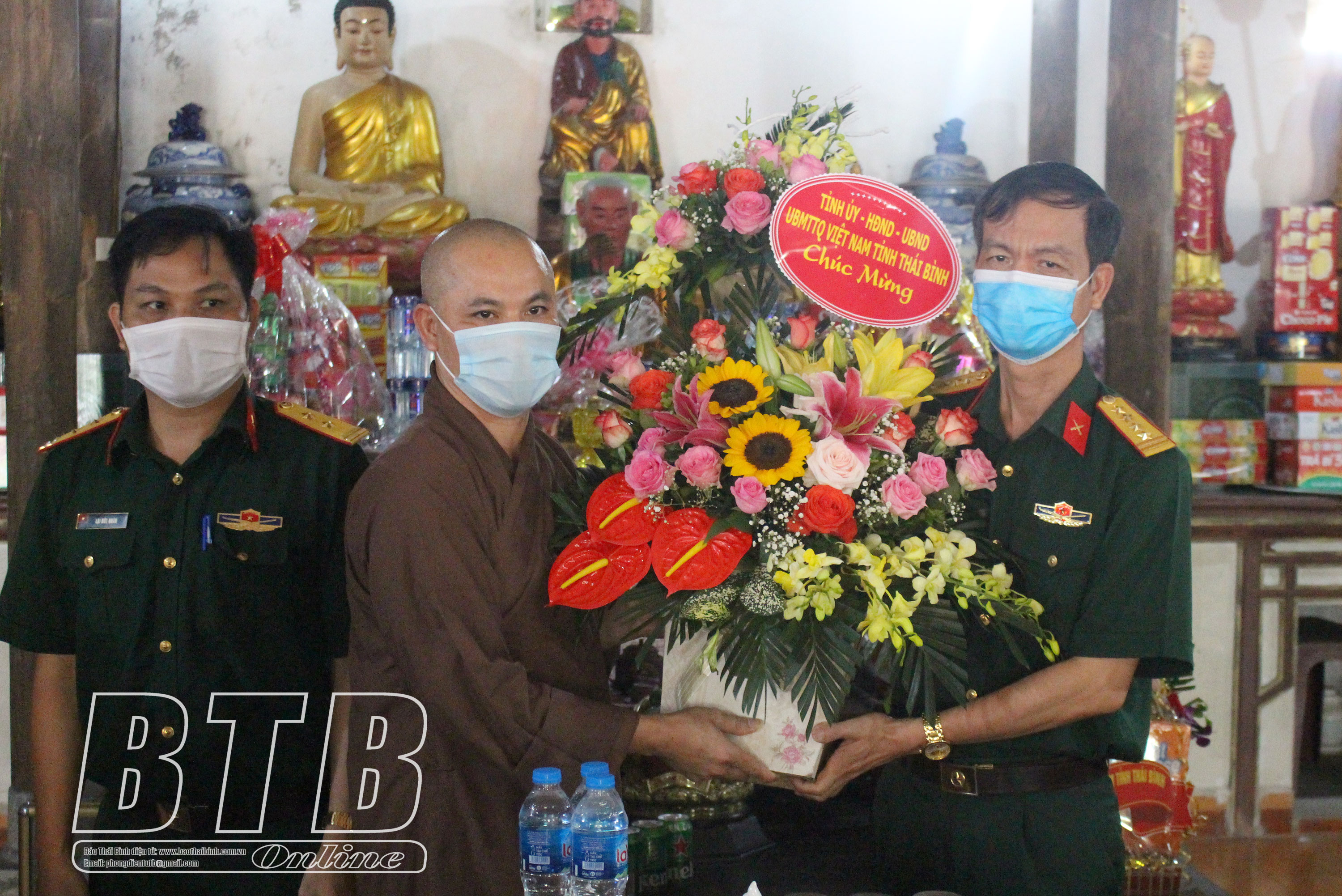 Tại huyện Thái Thụy, Đại tá Nguyễn Ngọc Tuệ, Ủy viên Ban Thường vụ Tỉnh uỷ, Chỉ huy trưởng Bộ CHQS tỉnh đã đến thăm, tặng quà, chúc mừng hòa thượng Thích Thanh Tụ, Ủy viên thường trực Ban Trị sự Giáo hội Phật giáo tỉnh, Trưởng ban Trị sự Giáo hội Phật giáo huyện Thái Thụy, trụ trì chùa Phúc Lâm, xã Thái Phúc; đại đức Thích Thanh Ngọc, Phó Trưởng ban Trị sự Giáo hội Phật giáo huyện Thái Thụy, trụ trì chùa Phương Man, xã Hồng Dũng.