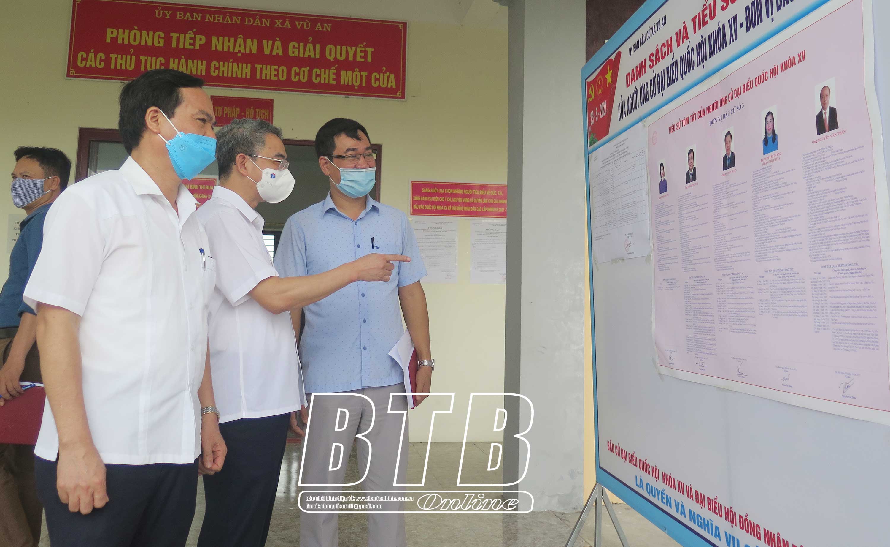 Sau khi đi kiểm tra thực tế công tác chuẩn bị bầu cử ở các xã: Vũ An, Vũ Lễ, Thanh Tân, đồng chí Trưởng ban Tuyên giáo Tỉnh ủy đề nghị huyện Kiến Xương tiếp tục đẩy mạnh công tác tuyên truyền, nhất là tuyên truyền trực quan sinh động trên các tuyến đường, trung tâm các xã, thị trấn. Tiếp tục nắm chắc tình hình, tuyệt đối không được chủ quan lơ là, bảo đảm tốt tình hình an ninh chính trị, trật tự an toàn xã hội; trong ngày bầu cử tuyệt đối không được để xảy ra sai sót, mất an toàn tại các điểm bỏ phiếu. Quan tâm, nắm chắc tình hình dư luận nhân dân, động viên nhân dân tham gia bỏ phiếu trong ngày bầu cử. Chuẩn bị phương án cụ thể để kịp thời ứng phó nếu xuất hiện dịch Covid-19 trong ngày bầu cử.