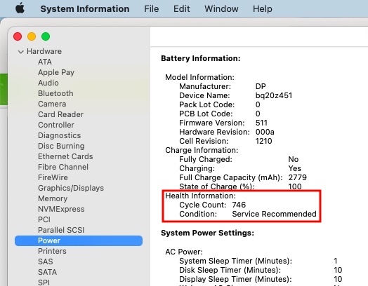 Kiểm tra tình trạng pin MacBook.