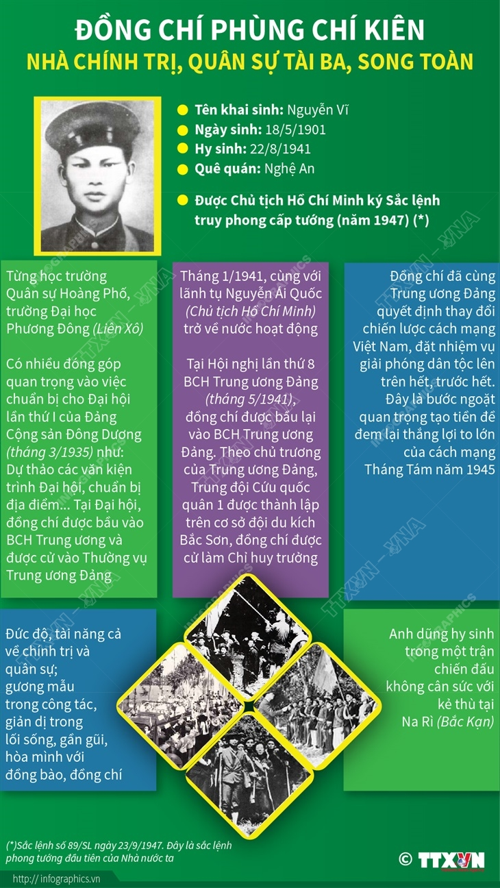 Với 16 năm hoạt động cách mạng liên tục, kể từ khi được giác ngộ lý tưởng đấu tranh giải phóng dân tộc cho đến hơi thở cuối cùng, đồng chí Phùng Chí Kiên đã có những cống hiến to lớn đối với sự nghiệp cách mạng Việt Nam. Đồng chí là nhà lãnh đạo tiền bối tiêu biểu của Đảng, nhà chính trị, quân sự song toàn, hy sinh vì sự nghiệp cách mạng của dân tộc. Đồng chí sinh ngày 18/5/1901, cách đây 120 năm.