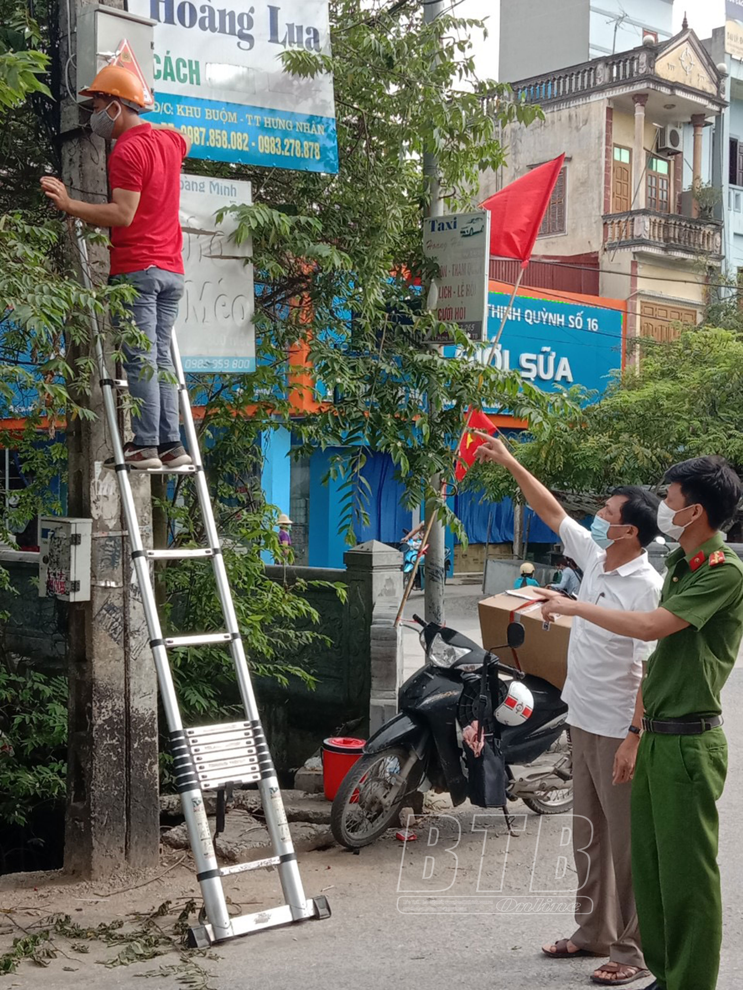 Lãnh đạo thị trấn Hưng Nhân kiểm tra việc lắp đặt hệ thống Camera an ninh.