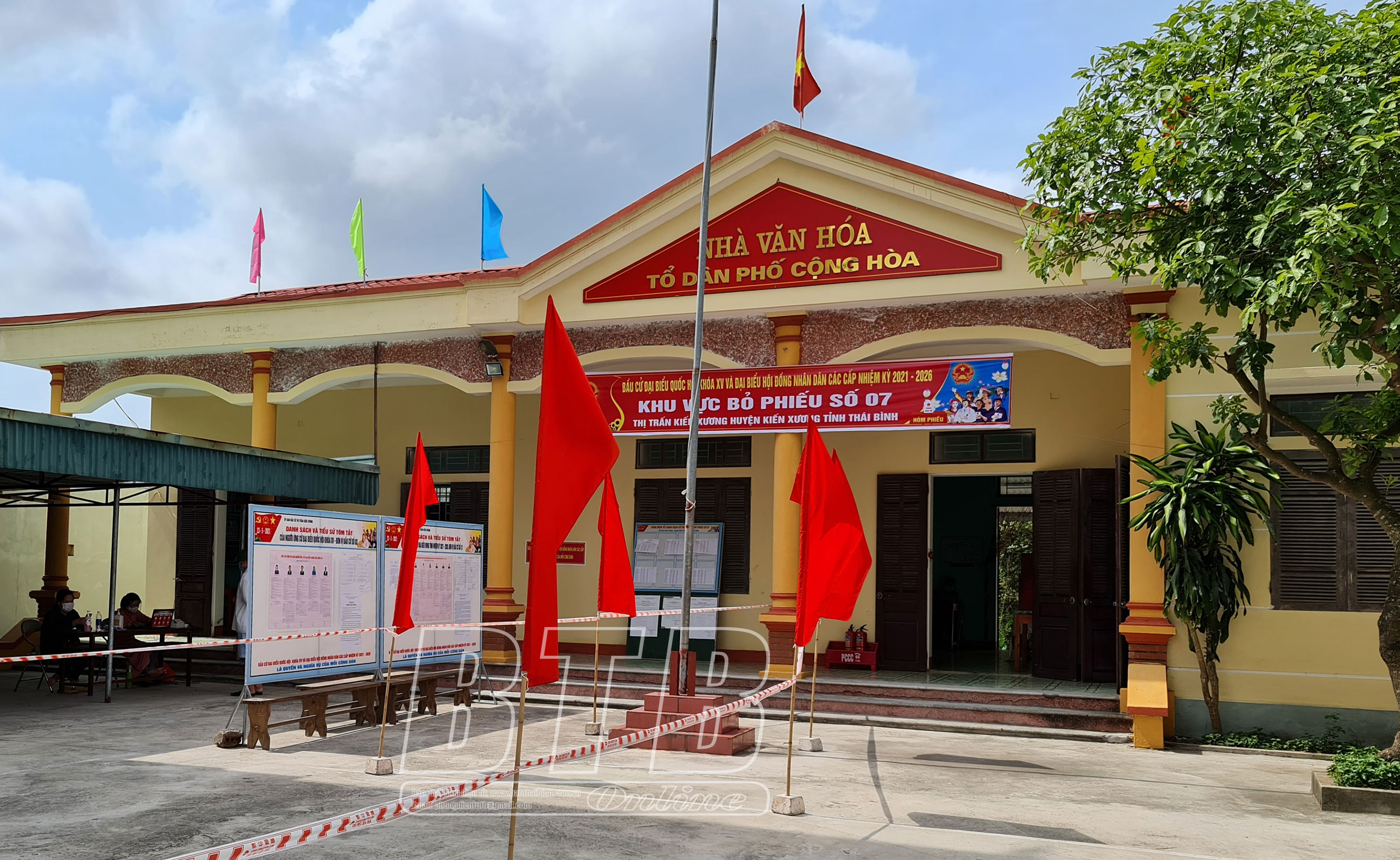 Một khu vực bỏ phiếu bầu cử đại biểu Quốc hội khóa XV và đại biểu HĐND các cấp nhiệm kỳ 2021 - 2026 trên địa bàn thị trấn Kiến Xương.