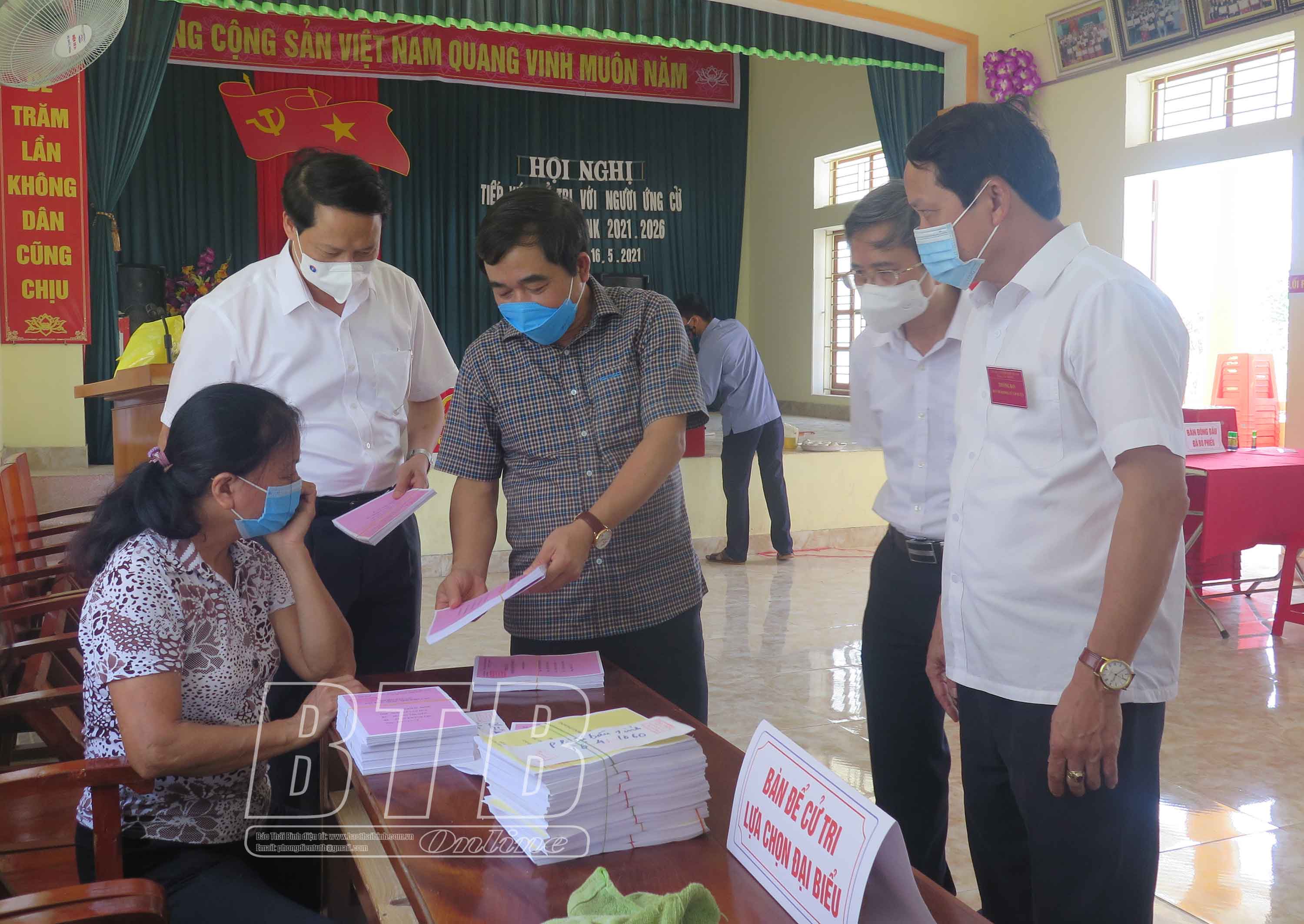 Đồng chí Nguyễn Tiến Thành, Phó Bí thư thường trực Tỉnh ủy, Chủ tich HĐND tỉnh kiểm tra công tác chuẩn bị bầu cử tại xã Quỳnh Hội (Quỳnh Phụ).